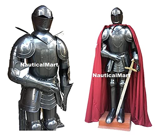 Amazon Com Medieval Black Knight Suit Of Armor With Shield Cloak Larp Home Kitchen